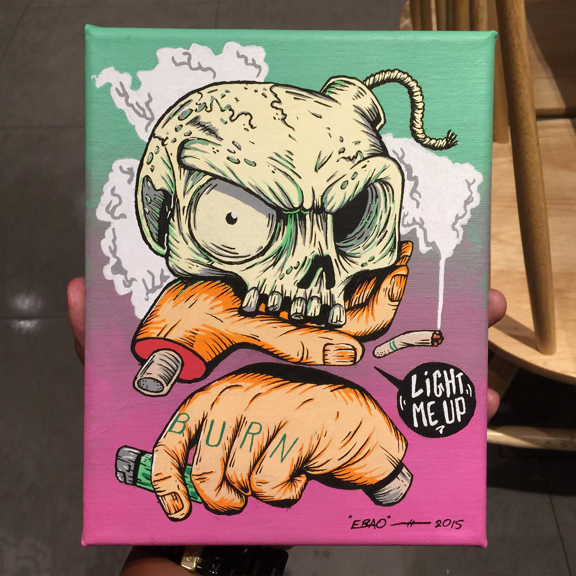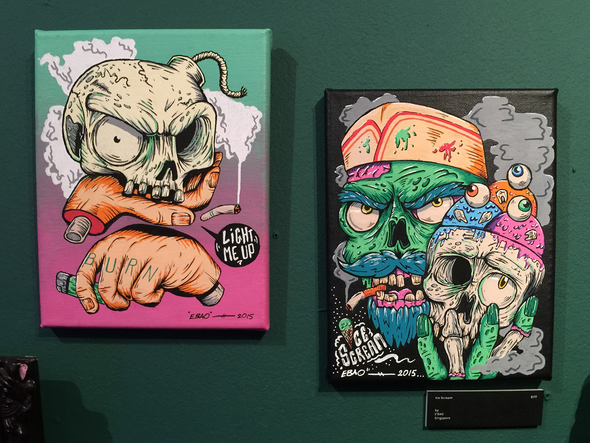 Something out of the box. My first exploration with Posca Pens and it was amazing! Love the colours. These two pieces are up for a Kult Exhibition, 'Little Shop of Horrors' in conjunction with Halloween 2015.
